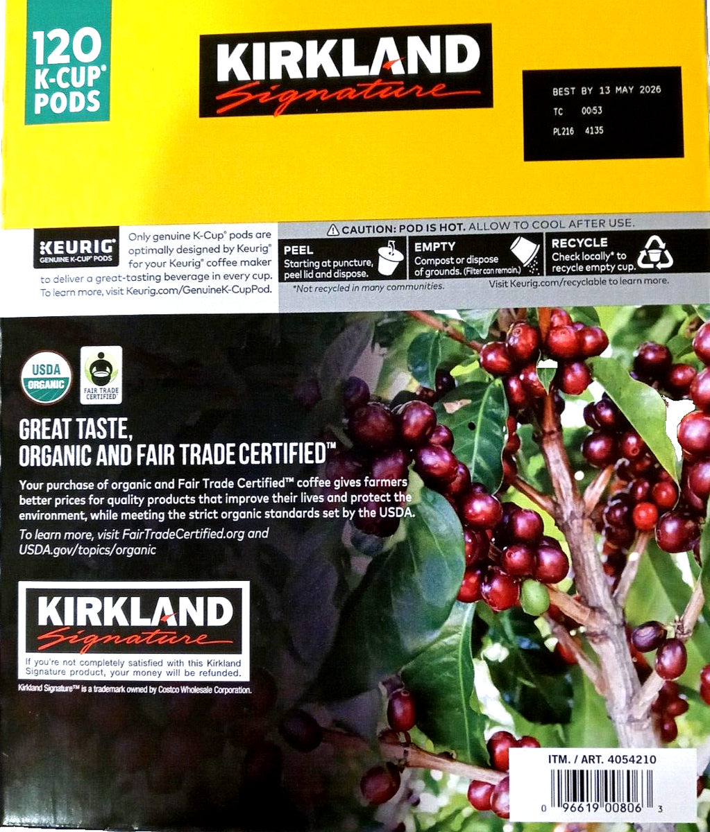 Kirkland Signature Summit Organic Medium Roast Coffee 120K-Cup Pods EXP 10/2026