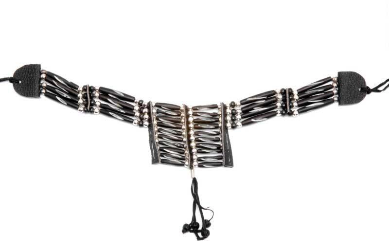 SM NATIVE INDIAN STYLE BLACK CARVED BONE BREAST CHEST PLATE beads necklace new