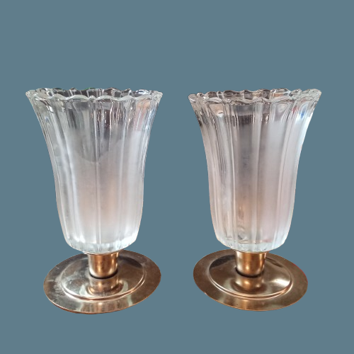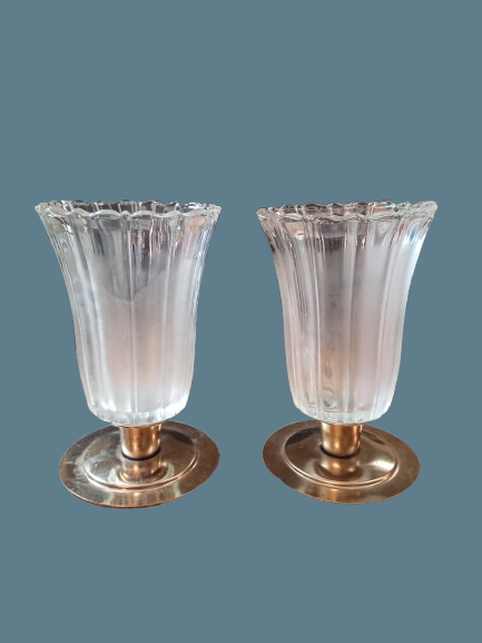 Vintage Ribbed Glass Votive Candle Holders with Brass Bases- Pair