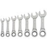 WHAT'S INCLUDED: (7) Ratcheting Stubby Combination Wrenches - Metric (10mm, 11mm, 12mm, 14mm, 15mm, 17mm, 18mm)