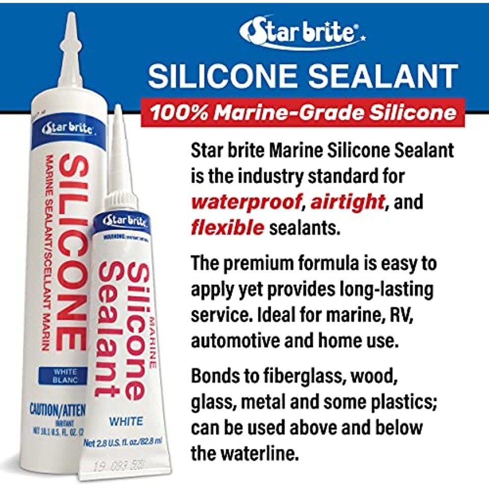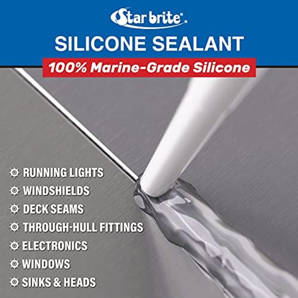 Marine Silicone Sealant is true 100% marine grade silicone to provide a durable, waterproof seal that will not crack, shrink or turn yellow. Retains flexibility for excellent adhesion to fiberglass, wood, glass, metal and some plastics. It is easy to apply and equally easy to remove when desired.