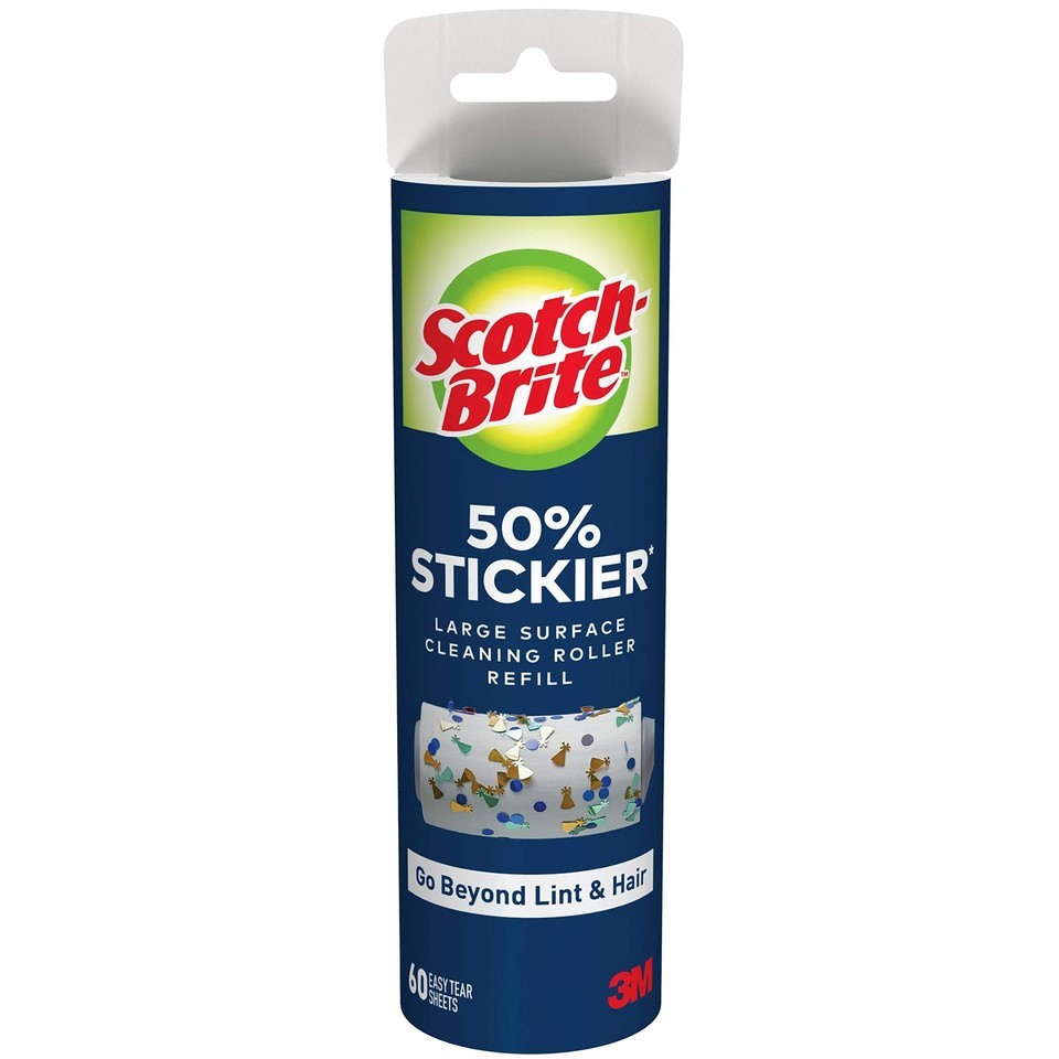 3M Scotch-Brite 50% Stickier Lint Rollers Refills remove lint, fuzz, pet hair, and more from large surfaces. With 50% stickier adhesive compared to standard lint rollers, you will grab more than just lint and hair.