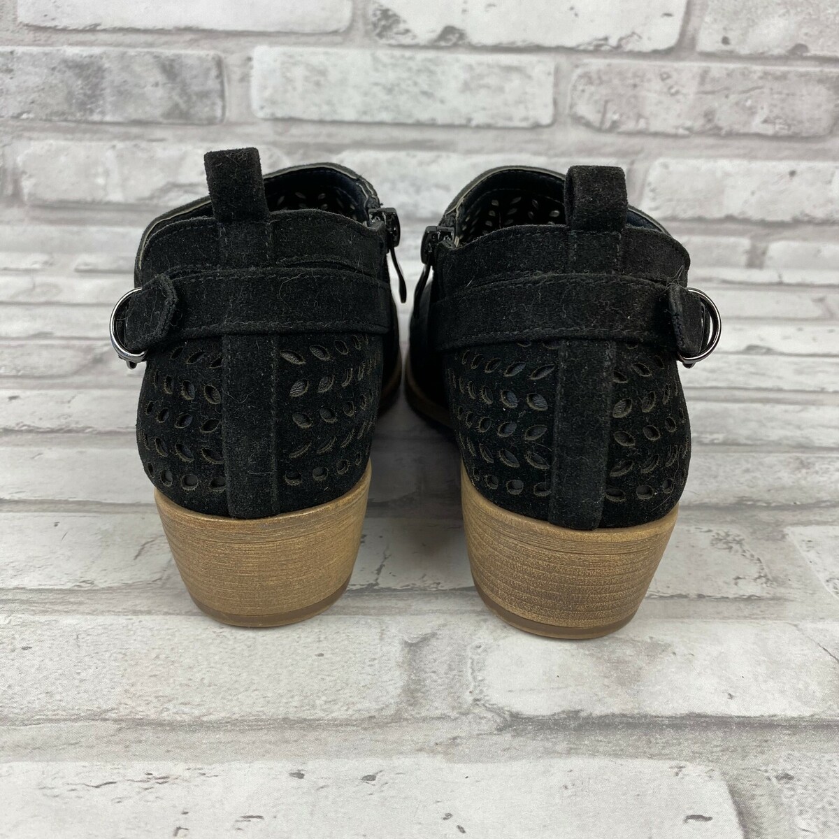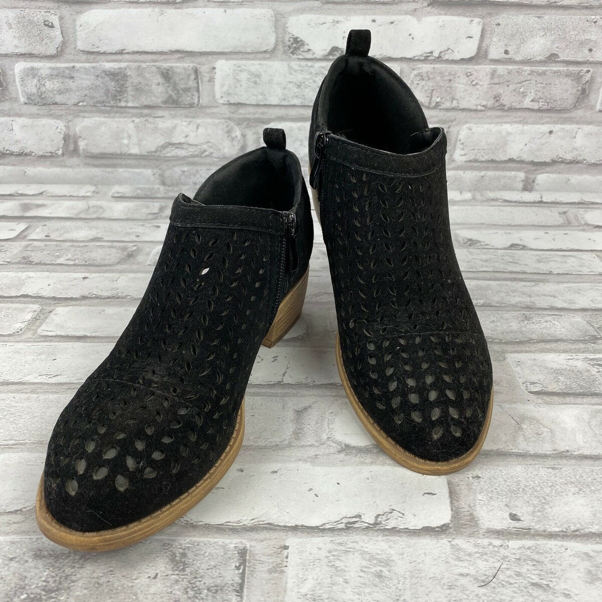 TC Boots Booties Black Size 6 Cut Outs Faux Suede Short Heel