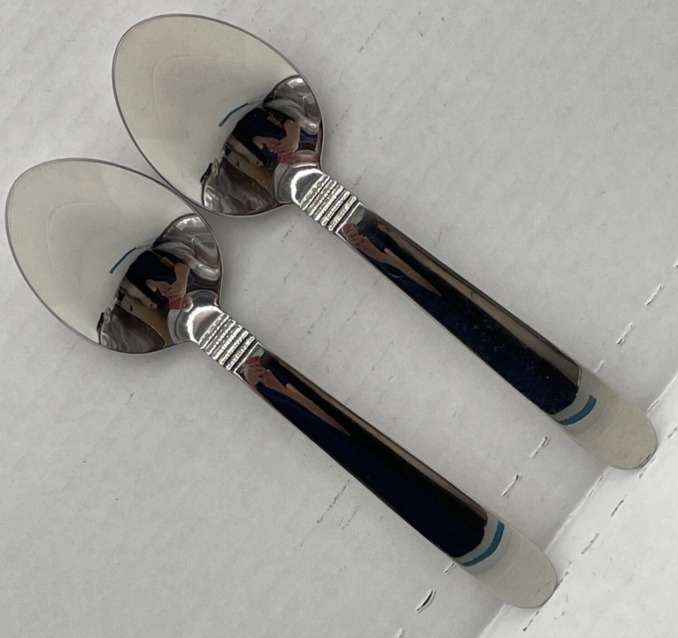 Oneida Stainless Raffia (Glossy) Oval Soup / Place Spoons 6 7/8", Lot of 2, New