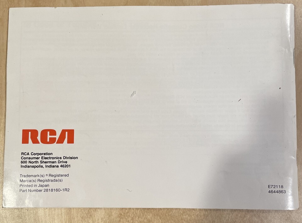 RCA SelectaVision VKT 300 VCR Video Cassette Recorder Owners Manual