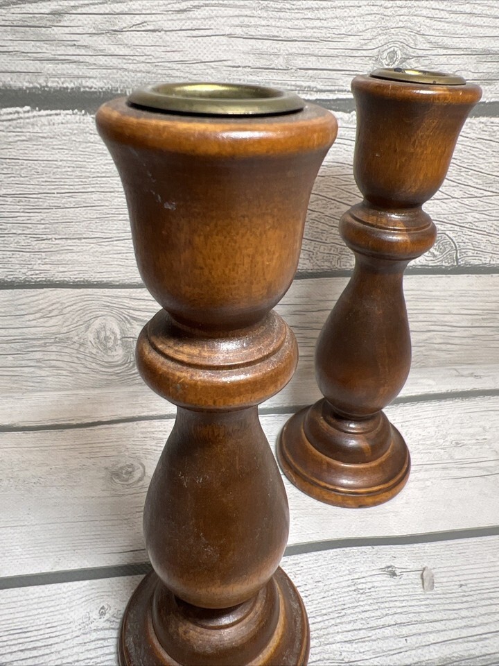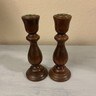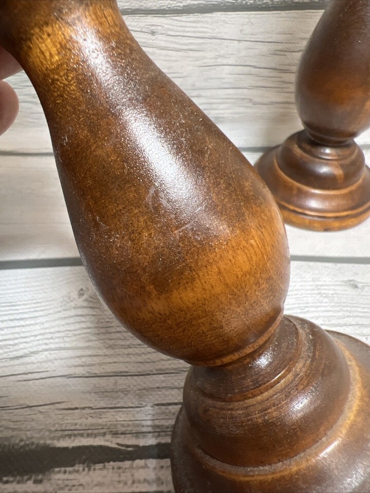 Vintage Mid Century Modern Turned Wood Candle Holders Set of 2
