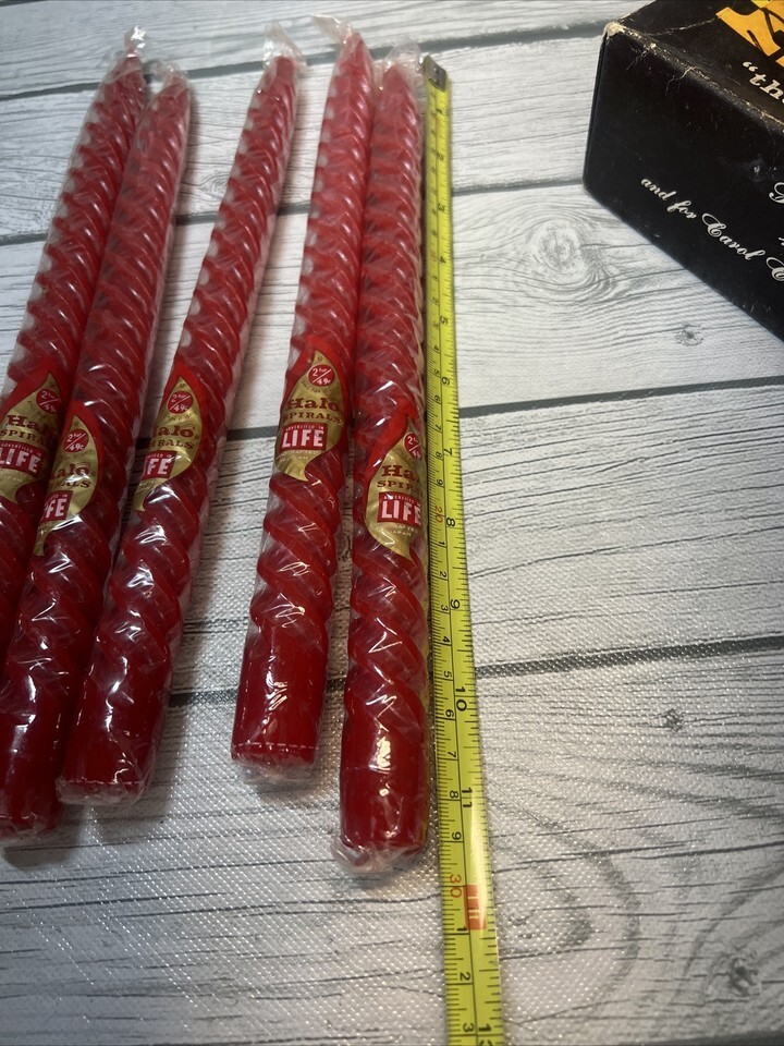 Elevate the ambiance of your living space with the Halo Spirals Twisted Candle Set. These five medium-sized, red taper/dinner candles boast a unique spiral shape that provides a sophisticated touch to any table or mantlepiece. Crafted with care in Japan, each 11-inch candle is designed to burn extra long, emitting a warm, inviting glow without the mess of drips or smoke.