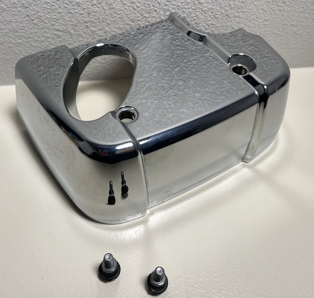 Up for sale is the OEM Left Front Over Head Cover removed from a well-cared-for 2008 Honda Shadow Spirit 750 (VT750C2). The cover and bolts are solid and the chrome looks great.