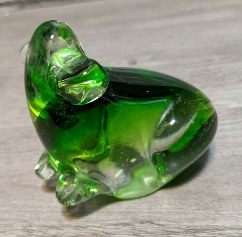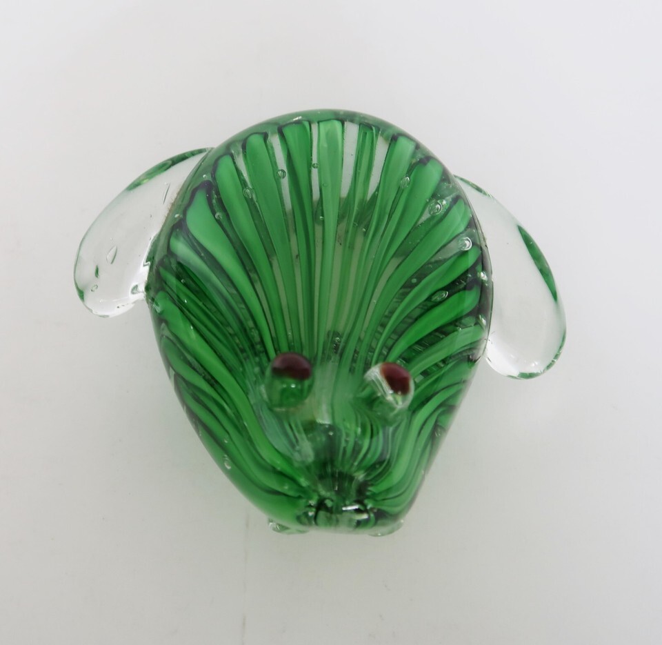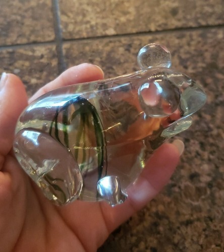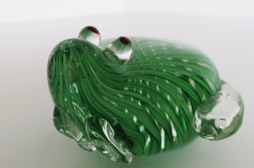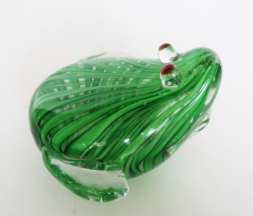 Adorable vintage art glass frog figurine paperweight clear with green & red