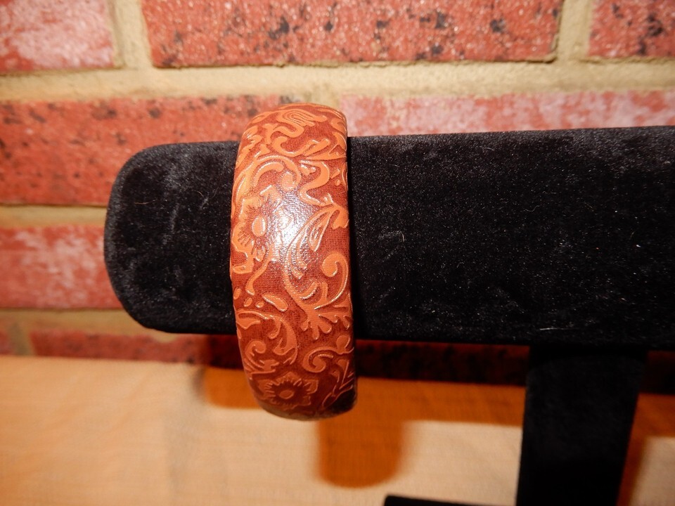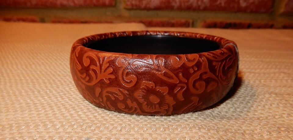 Vtg Flower Vine Pattern Leather Wrapped Wood and 50 similar items