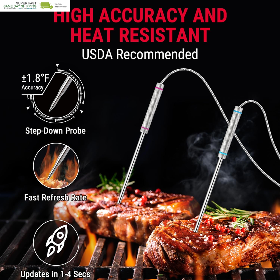 Wireless Meat Thermometer Digital for Grilling and Smoking, 4 Meat Probes Grill