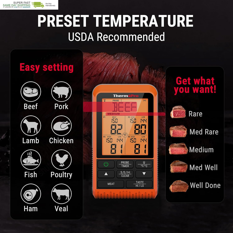 Perfect Gifts: Thermopro digital meat thermometers are delivered in an elegant box, making it the ideal grilling gifts for men or women, dad or friends, husband or wife, also the must-have gift for for BBQ lovers, chefs, foodies!