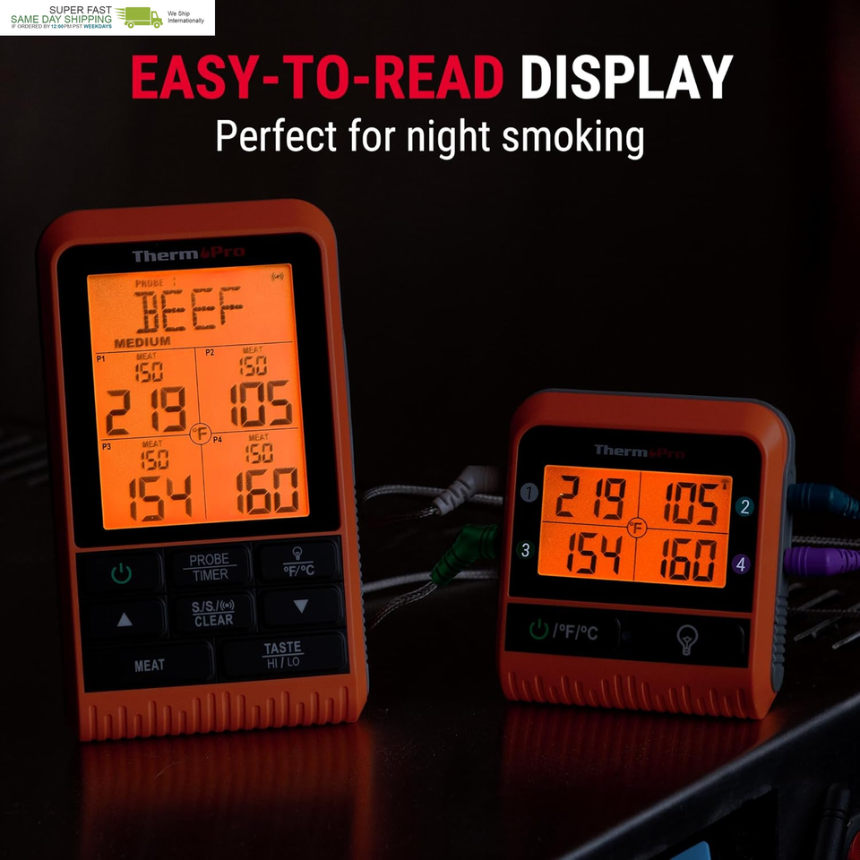 Wireless Meat Thermometer Digital for Grilling and Smoking, 4 Meat Probes Grill Thermometer for outside Grill, BBQ Thermometer for Cooking Turkey Temperature Indicator