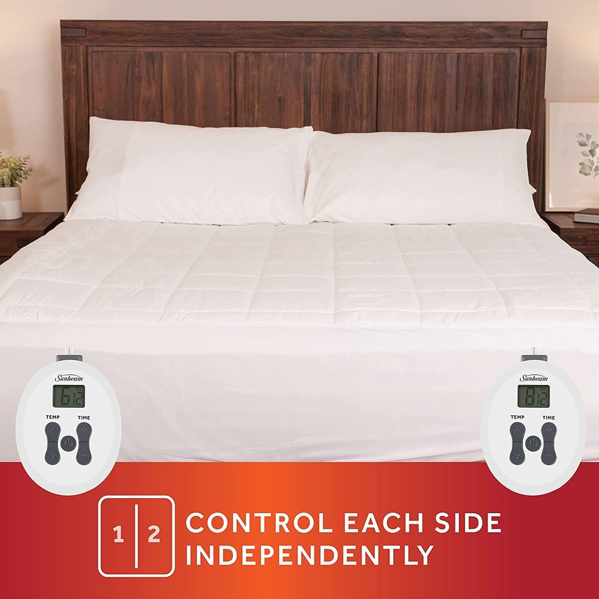Bullet point: SOFT AND COMFORTABLE ? Never climb into cold sheets again. 1 Electric Heated Quilted Mattress Pad in ultra soft comfortable fabric. Twin and Full size include 1 controller. Queen and King size include 2 controllers. Quilted Cotton Top, Polyester Bottom