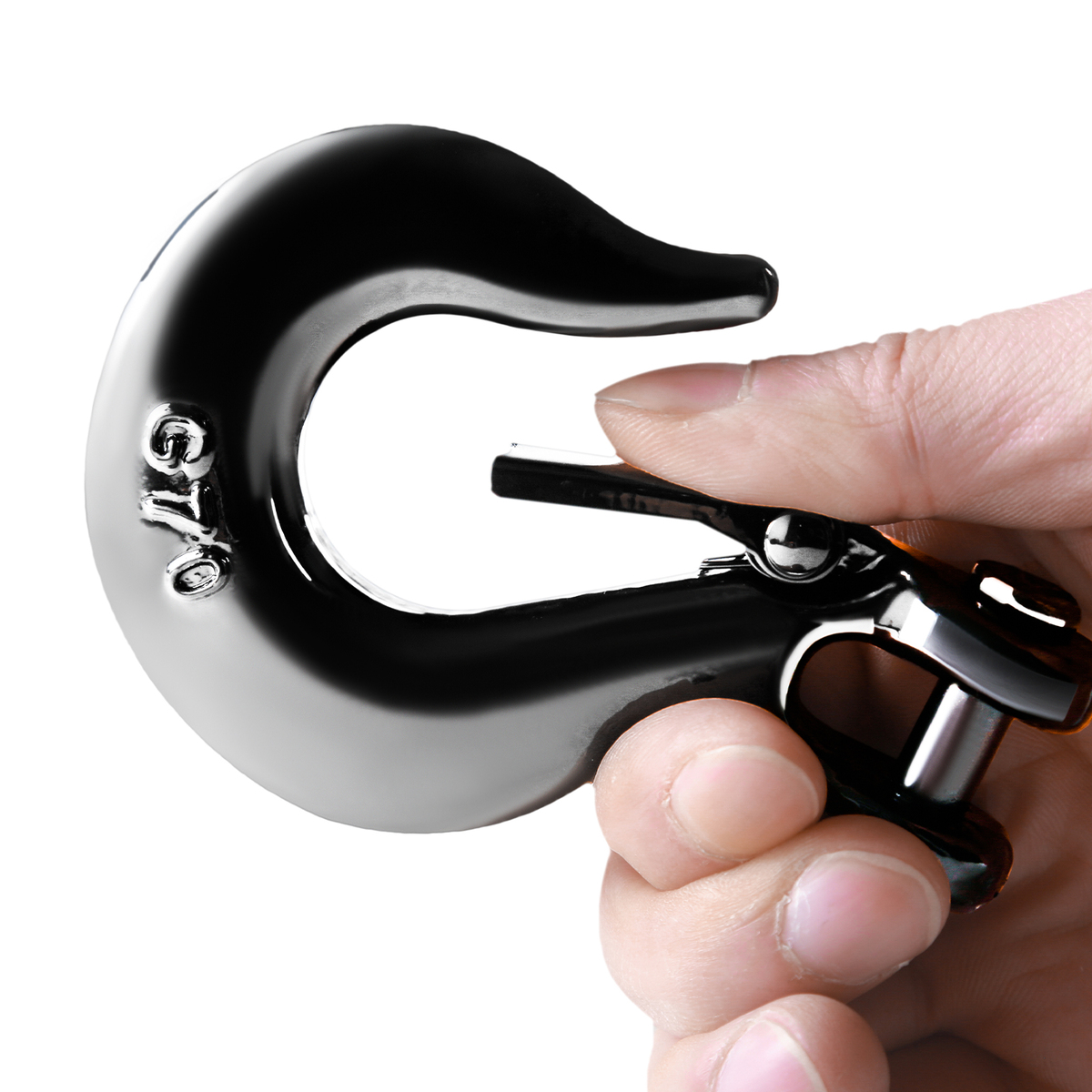 Robust Ram's Horn Hook: Forged from top-notch steel and boasting a breaking strength of 20,988 lbs/93.4 kN, our winch rope hook is designed to last. The powder coating fends off rust for longer wear. No more worries about heat or slips – our hook comes with a handy pull strap for a cool, secure grip every time.