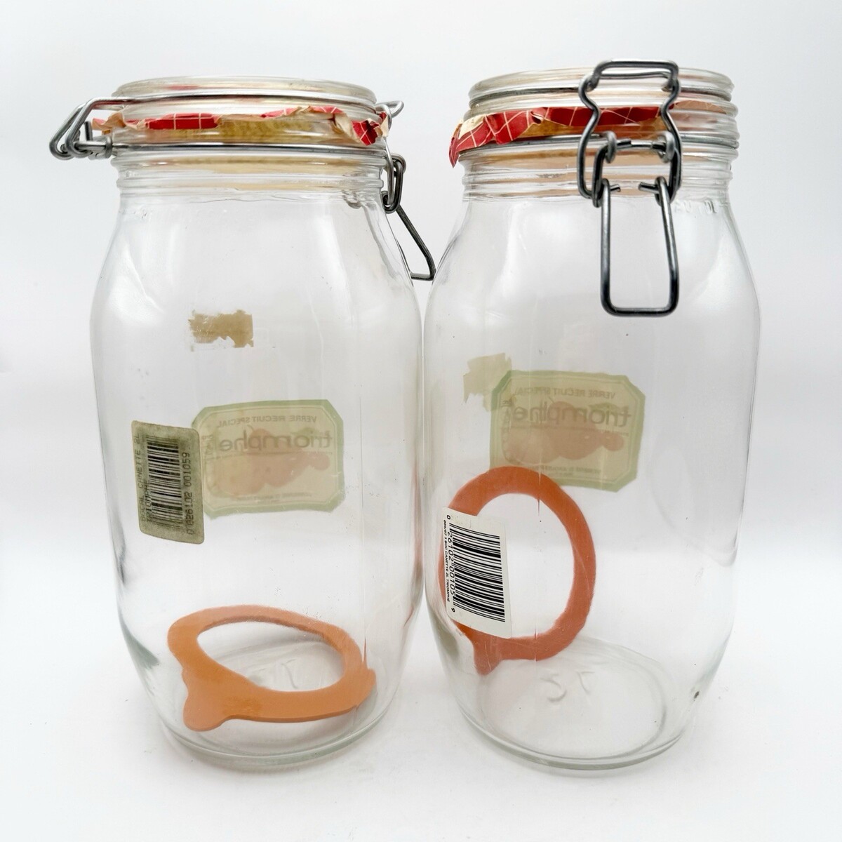 X2 Vintage Triomphe France Medium Glass Jar/Canister Wire Lock 2L New Old Stock