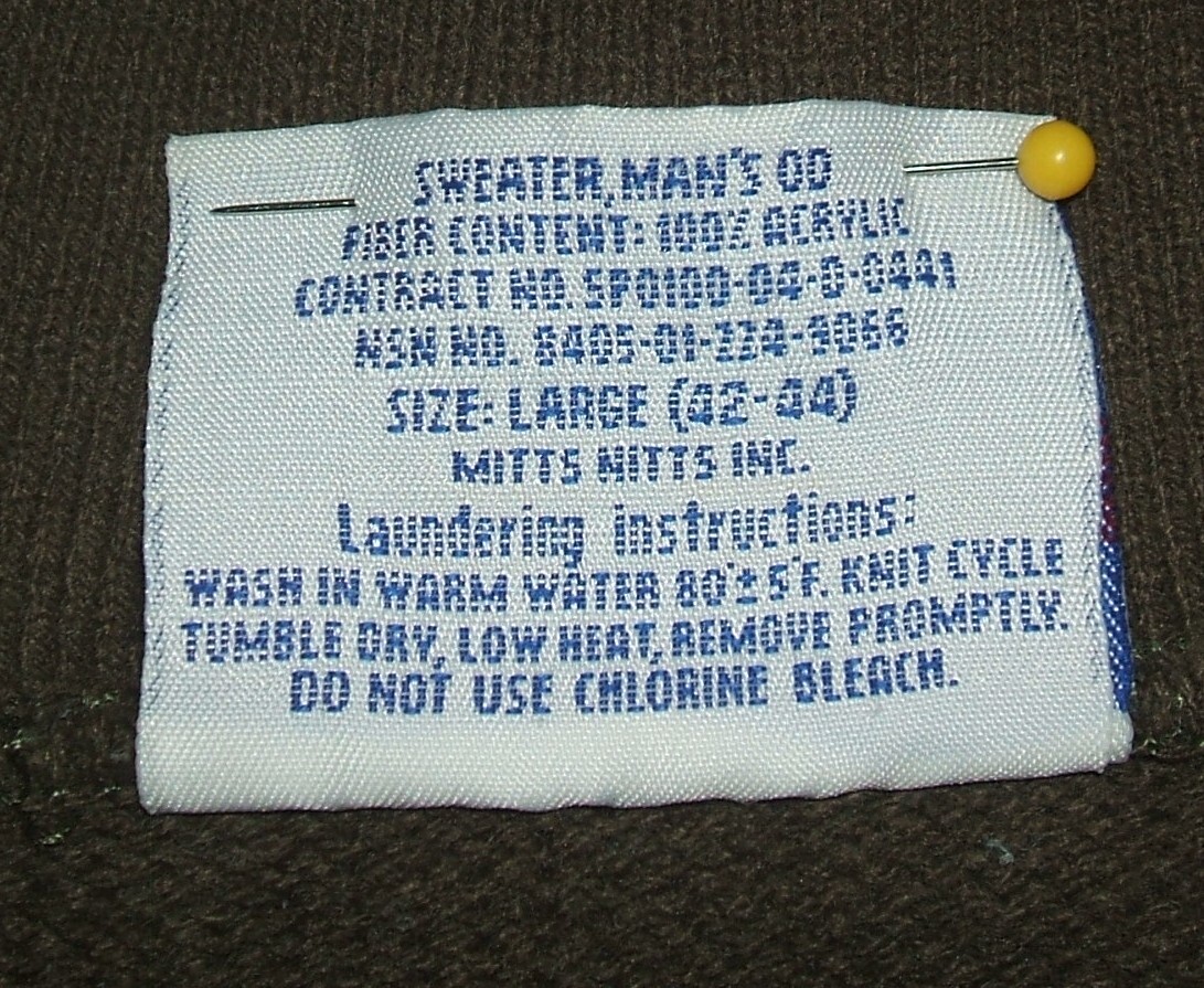 US Army Five/5 Button Sweater, 100% acrylic polyester, Large, Mitts Nitts 2004