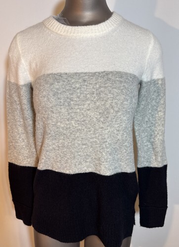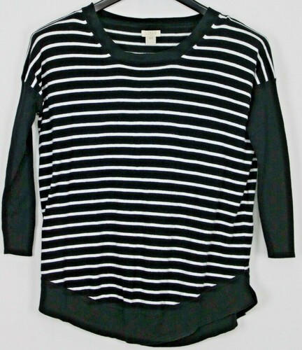 J Crew Womens Pullover Crew Neck Sweater Size XXS Black White Striped