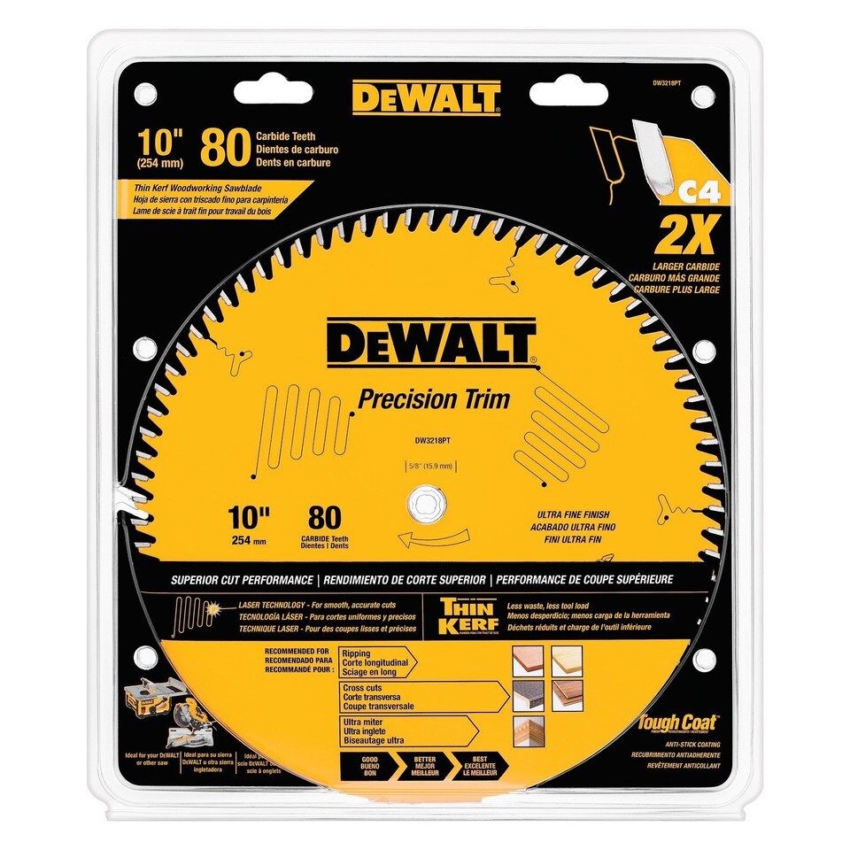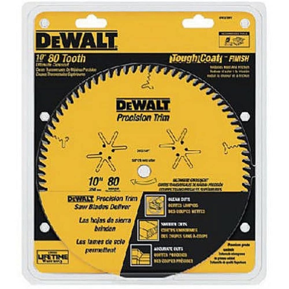 DEWALT DW3218PT 10-Inch 80 Tooth ATB Crosscutting Saw Blade with 5/8-Inch Arbor