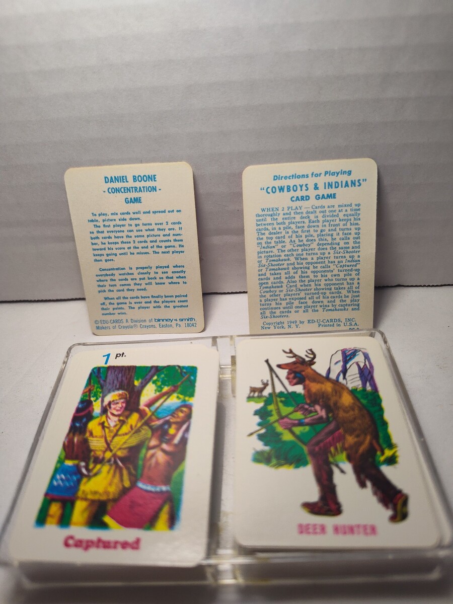 Vtg 1967 Ed‑U‑Cards Daniel Boone & Cowboys and Indians Mini Card Game Set – Comp