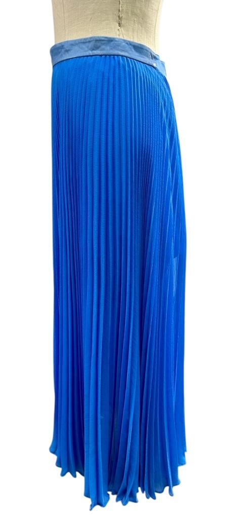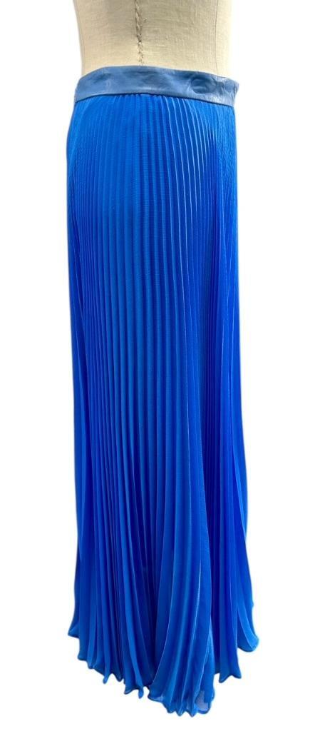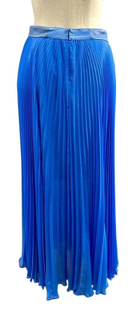 Beautiful ALICE + OLIVIA Blue With Leather Waist Pleated 1/2 Lined Skirt