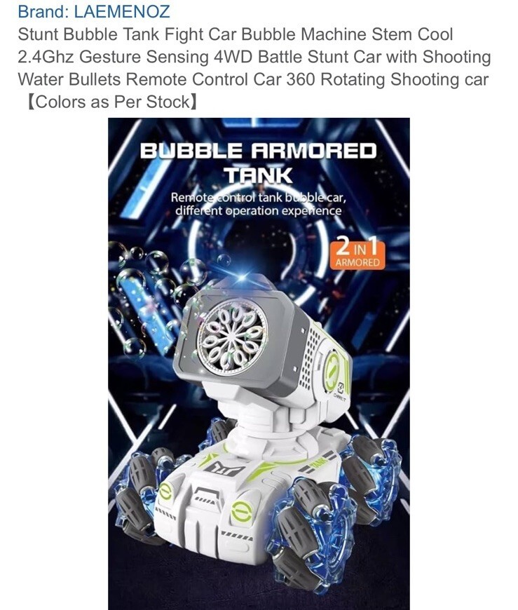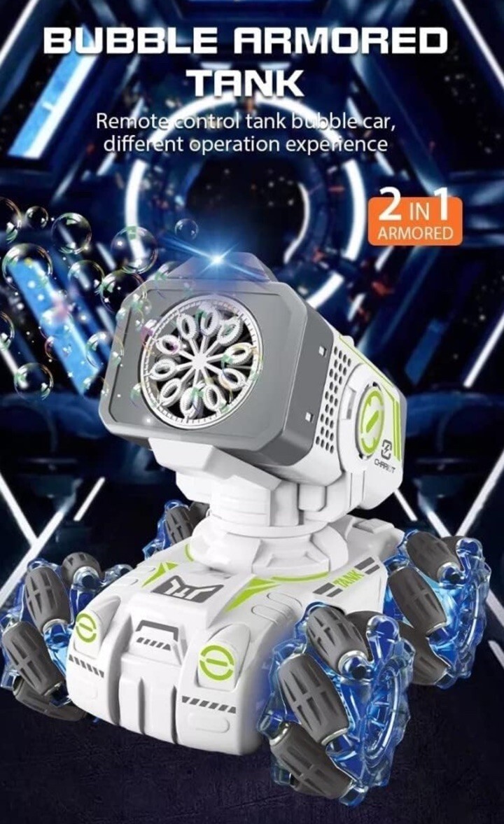 The Top Race RC stunt bubble tank is a remote control toy designed for both fun and showmanship. With the brand's reputation for quality, this bubble tank is sure to provide hours of entertainment for RC enthusiasts. Its unique design allows users to control the direction and movement of the tank while also creating bubbles to add a visual element to the performance. Perfect for both indoor and outdoor use, this RC stunt bubble tank is a versatile and exciting addition to any collection.