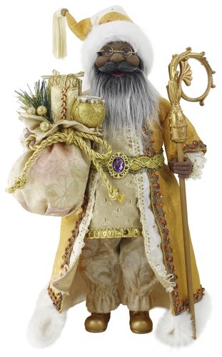 This 33" tall African American Mrs. Santa Claus statue is a beautiful addition to your holiday decor. Made from velvet material, this large figurine features intricate details and vibrant colors. Perfect for indoor use, this self-standing statue embodies the spirit of the 21st century with its contemporary design. The African American theme adds a unique touch to your seasonal display, making it a standout collectible piece for adults to enjoy during the Christmas season.