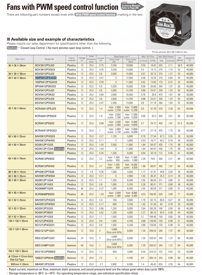 109P0412P3J033 Sanyo Denki Pwm Fan 40x40x28 and similar items