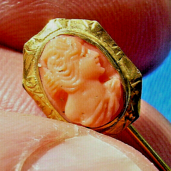 Antique Mediterranean Coral Pin 10k Solid Gold Handmade Victorian Design Cameo