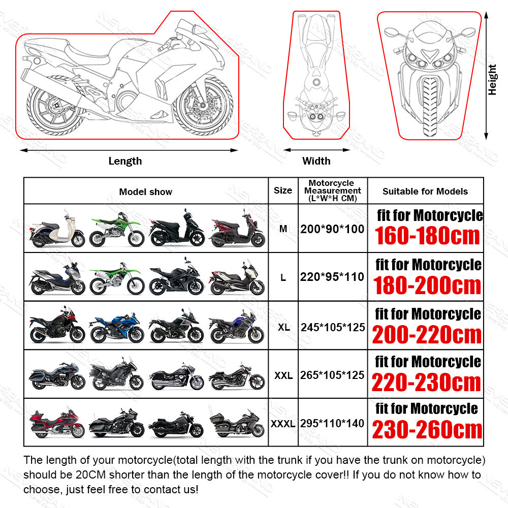Made from durable waterproof fabric with reinforced stitching, it provides reliable protection without scratching your motorcycle’s paint. The secure fit helps prevent wind lift, keeping your bike covered and safe whether parked in a garage, driveway, or on the street.