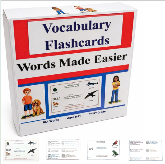Vocabulary and Reading Flashcards Ages 8-11 Grades 3rd-5th 864 Words