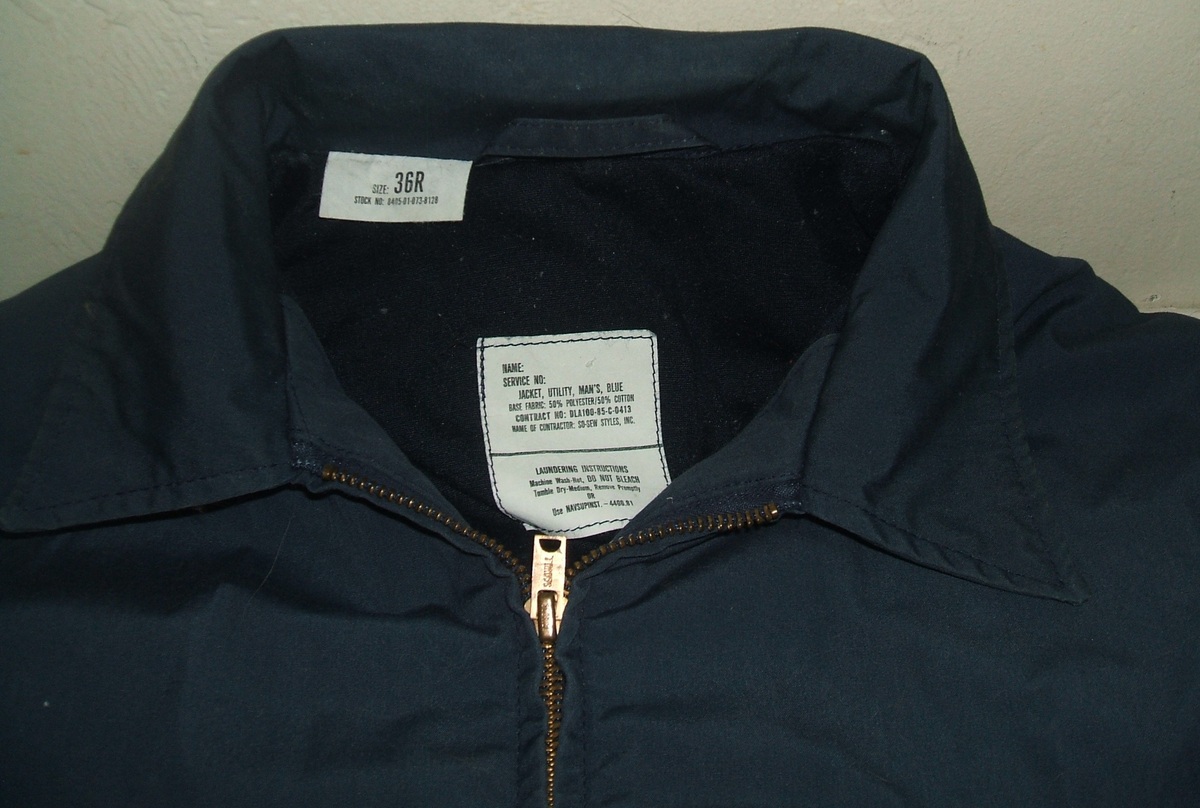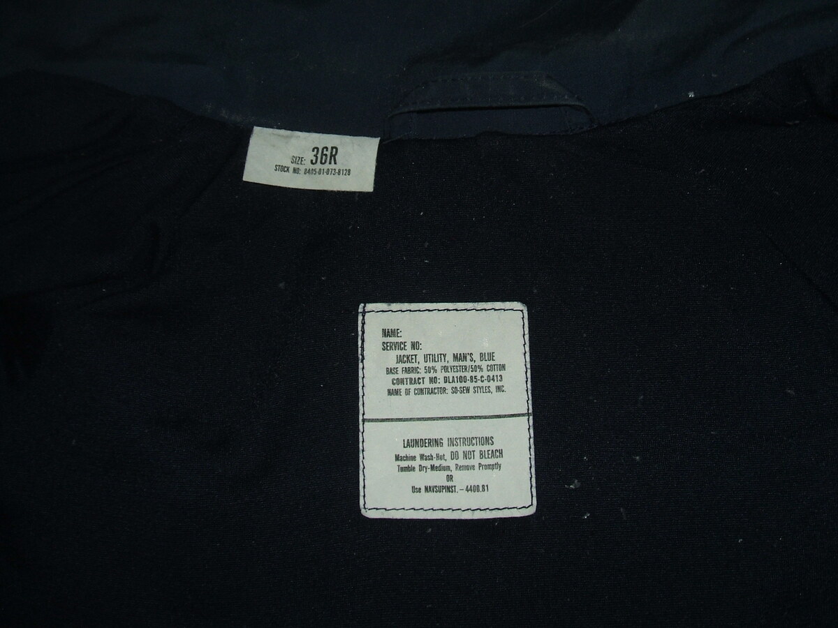 USN US Navy blue utility jacket, 36R, So-Sew 1985 UNISSUED!