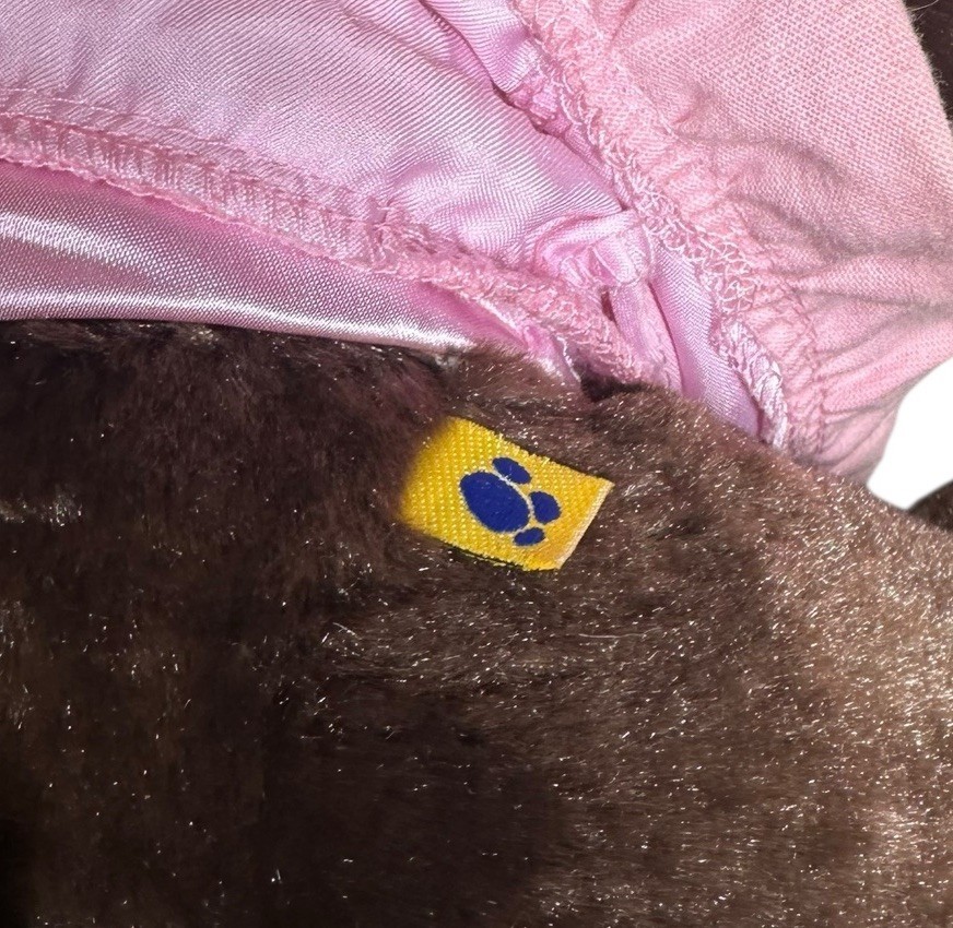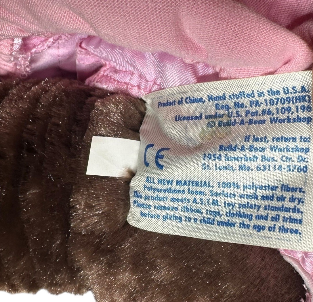 Build A Bear 2011 FUDGE PUP Brown Puppy Dog 11" Plush Stuffed Animal Pink Dress