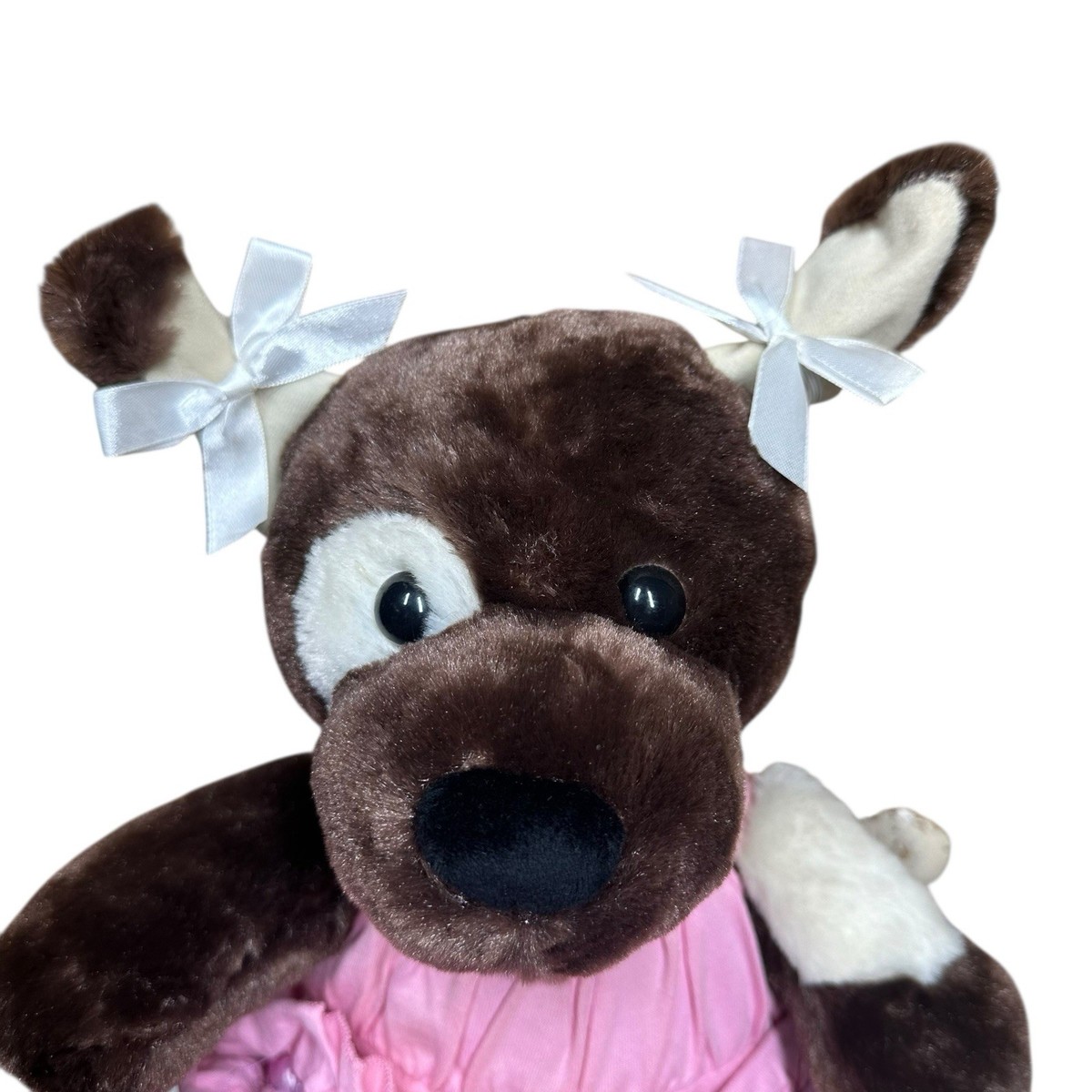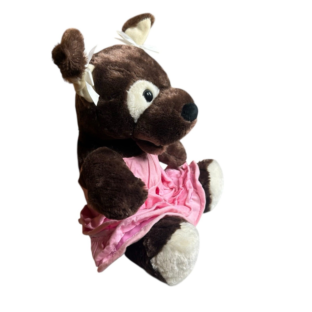 Build A Bear 2011 FUDGE PUP Brown Puppy Dog 11" Plush Stuffed Animal with Pink Dress and Ear Bows