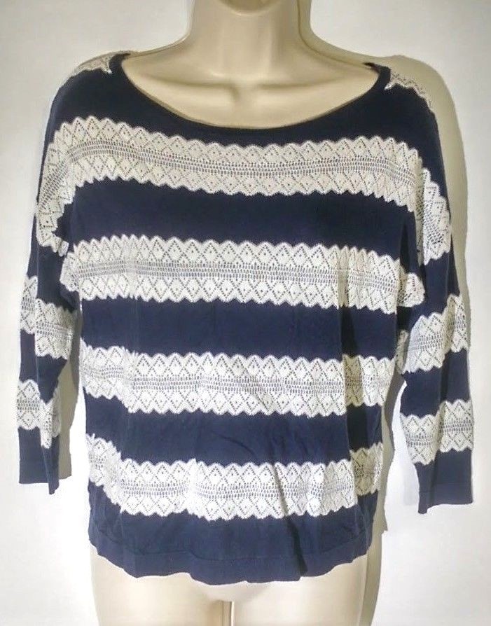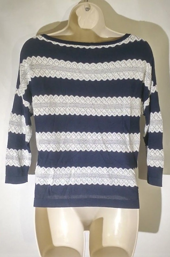 Charter Club Women's Crew Neck Sweater Size P/P Striped Blue White