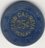 CLUB CAL-NEVA CASINO $ .25 TWENTY FIVE CENTS CASINO CHIP - RENO NV