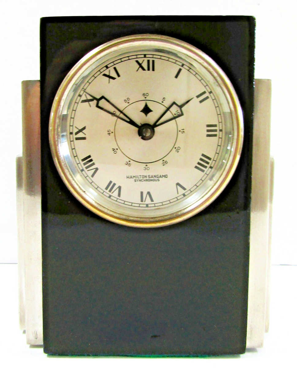 Hamilton Sangamo Synchronous 1930s Scarsdale Model Black Lacquer Chrome Clock