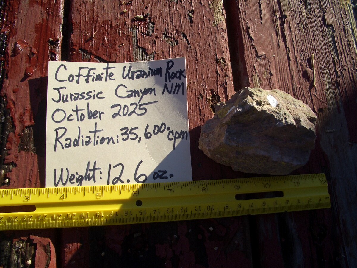 COFFINITE URANIUM ROCK 12.6 OZ weight; 35,600. CPM $28.00 plus $12.80 s/h