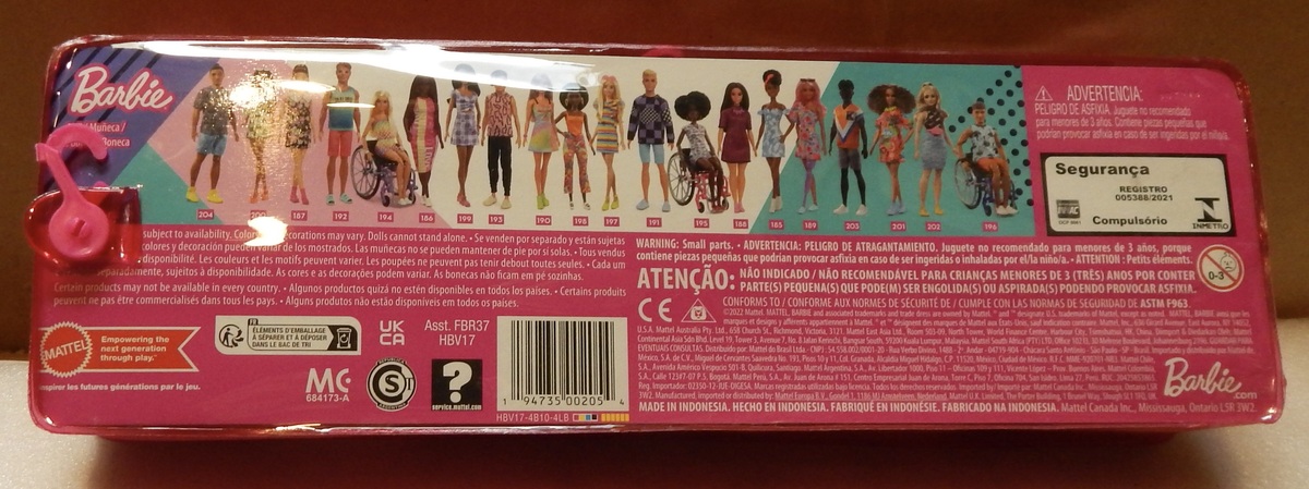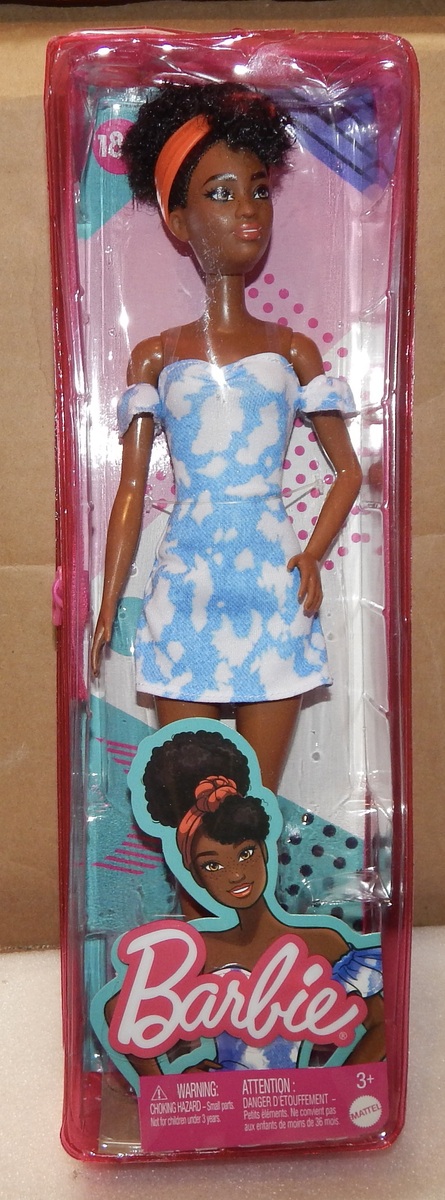 Barbie Fashionistas Doll #185 Mattel Dark Hair Blue White Dress 2022 HBV17 NIB