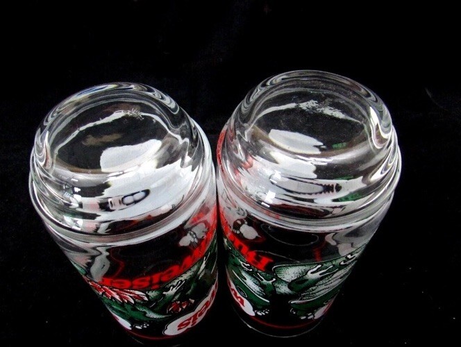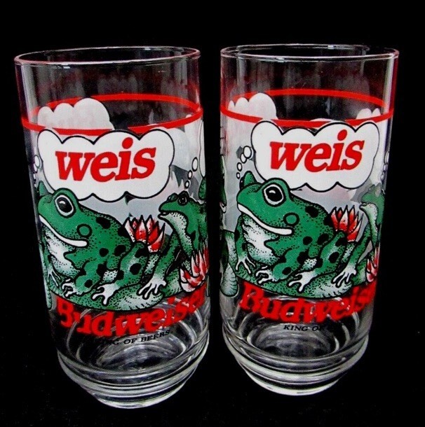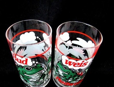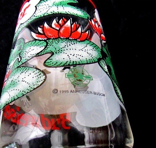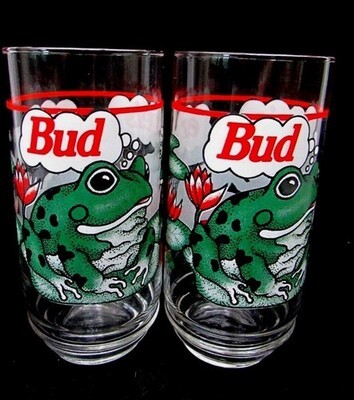 This Lot of 2 Budweiser Glass Frog Drinking Glasses from 1995 is a unique and collectible piece of vintage Americana. Made by Anheuser Busch, these 16oz glasses feature a fun and playful frog design, perfect for beer enthusiasts and collectors alike. The glasses are a great addition to any Breweriana collection, showcasing the iconic Budweiser brand in a whimsical and nostalgic way. Cheers to enjoying a drink in style with these vintage Budweiser glass frog glasses!
