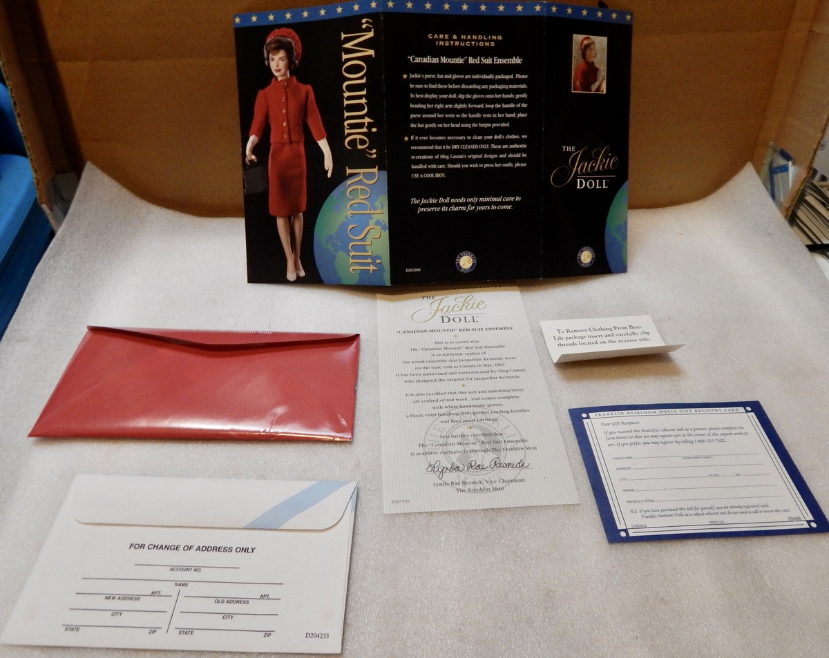 Franklin Mint The Jackie Doll Kennedy Canadian Mountie Red Suit Ensemble 9M.