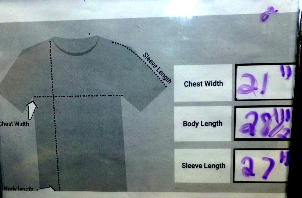Chest Width = 21", Body Length = 28.5", Sleeve Length = 27"