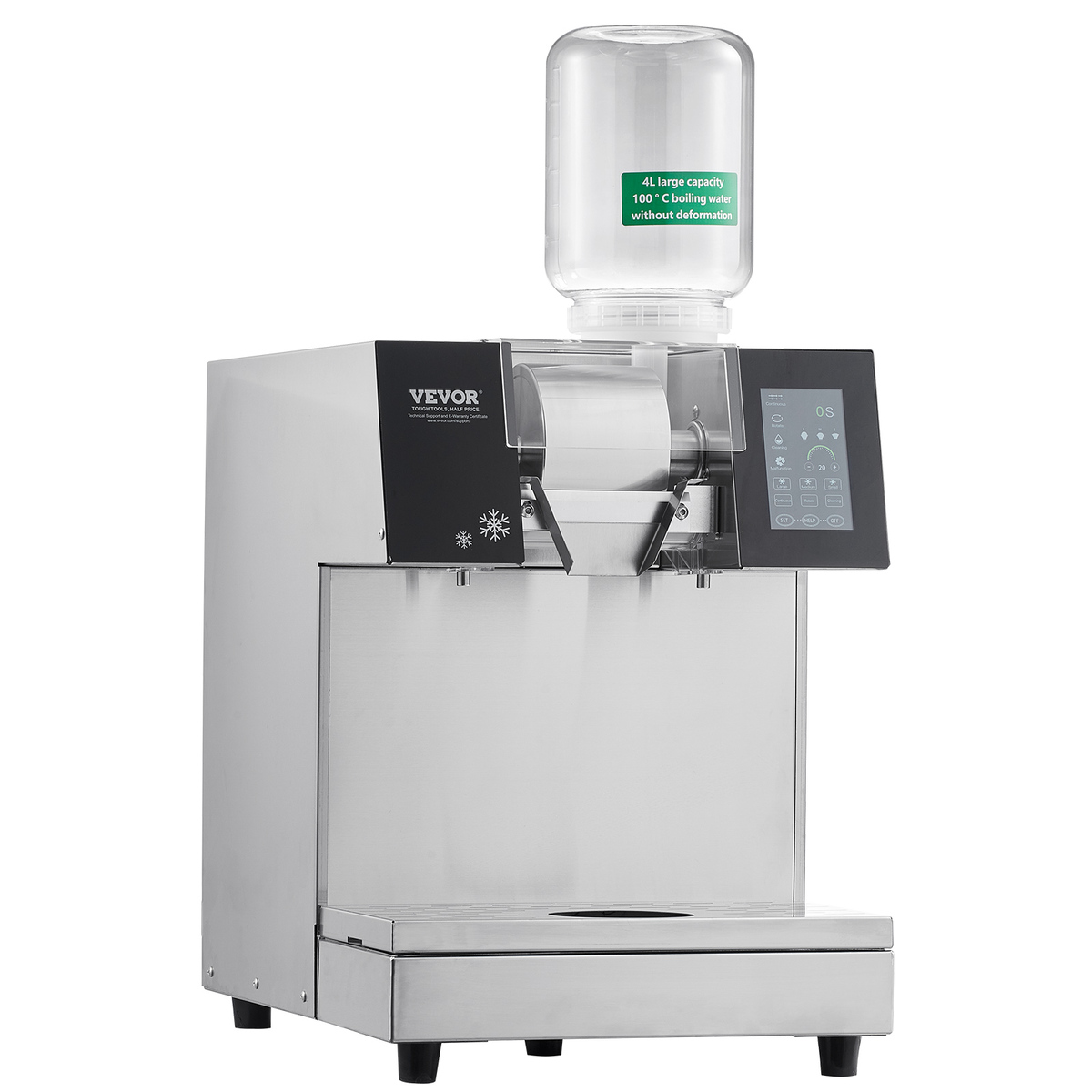 Efficient, Continuous Ice Production: The commercial snowflake ice machine features a high-performance compressor and a stable liquid-cooling system that rapidly dissipates heat, enhancing production efficiency. It achieves quick cooling in 40 seconds and produces ice in just 3 seconds after pre-cooling, capable of producing approximately 529.1 lbs / 240 kg of ice per day, ensuring efficient and continuous operation.