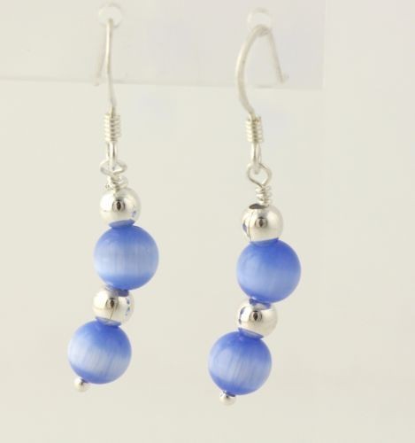 Blue Faux Crystal Dangle Hook Earrings 3" Long