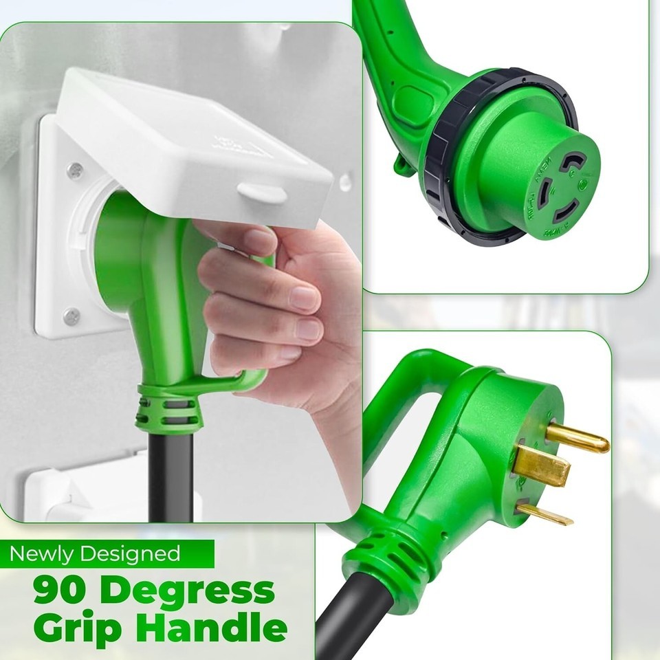 Easy Handling: The right-angle male TT-30 plug comes with a convenient handle, making it easy to pull and push. No more struggling with awkward angles when connecting your RV to the power source. Plus, the twist-lock female L5-30 receptacle ensures a secure connection.