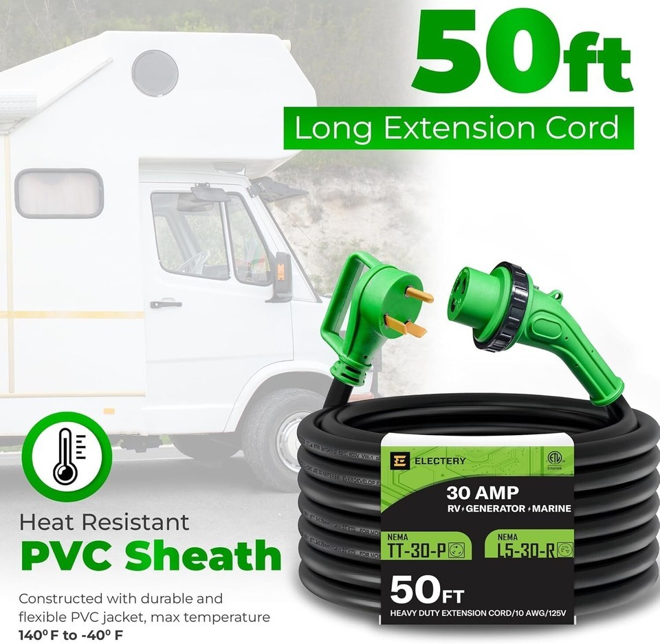 High-Quality Extension Cord: Our extension cord is built to last. It features STW 10AWG*3 stranded copper inner wire, ensuring reliable performance and supporting a maximum 30 Amp load. Whether you?re using it for your RV, camper, trailer, or mobile home, this heavy-duty cord won?t let you down.