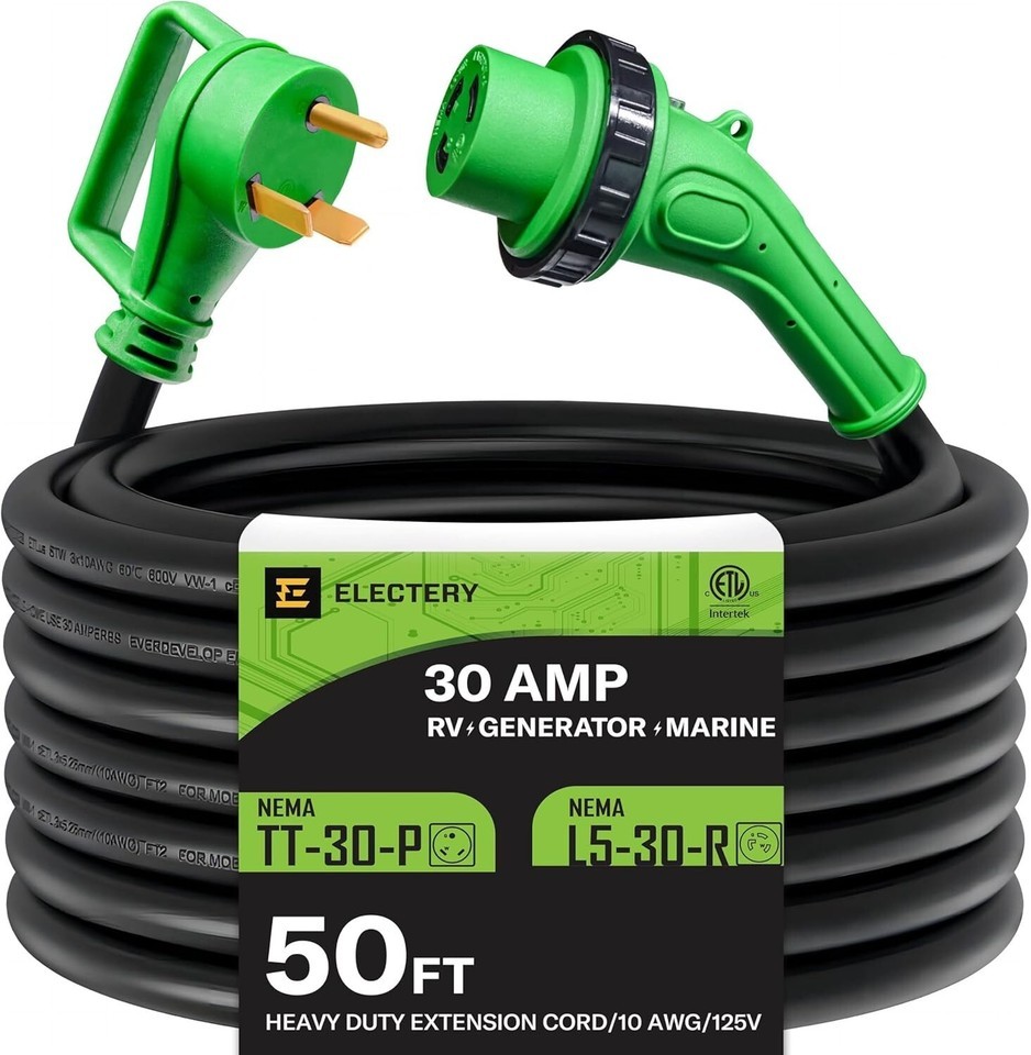 30 Amp 50 Ft RV Power Extension Cord NEMA TT-30P to L5-30R with Twist Locking...