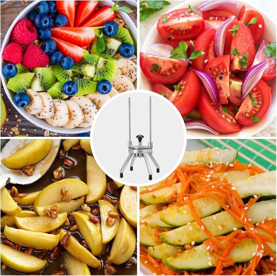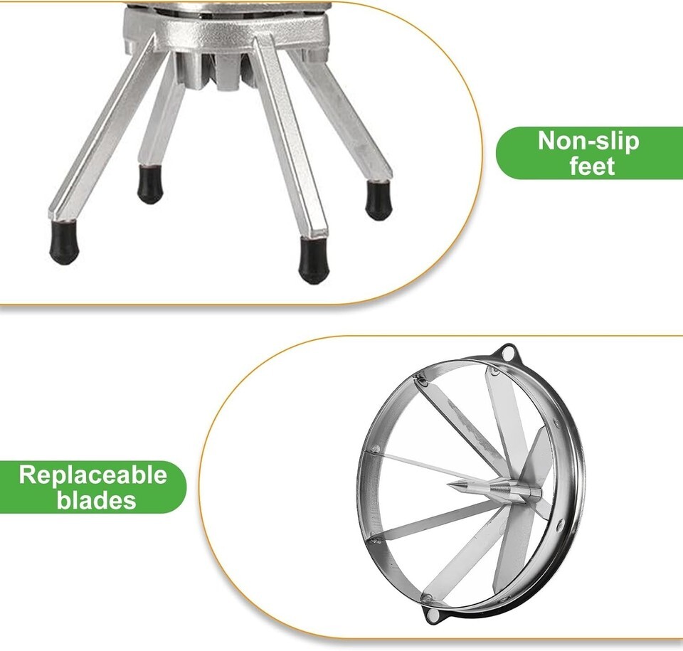 Widely Use - Our wedges cutter is suitable for both home and commercial use, perfect for fruits and vegetables, such as apples, citrus, cucumbers, onions, tomatoes, etc. (NOTE: It is not recommended cutting sweet potatoes. Sweet potato is hard, it will cause great damage to the blade.)