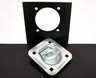 BACKING PLATE is used for support under the floor when installing the tiedown attachments, and prevents the bolts from pulling through. SPECIFICATIONS: 1) The backing plate measures 6-1/2" x 6-1/2". 2) Thickness is 11 gauge (a little thinner than 1/8). 3/8" holes. 3) 3-1/2" diameter cutout. 4) Steel backing plate is zinc coated to inhibit corrosion.