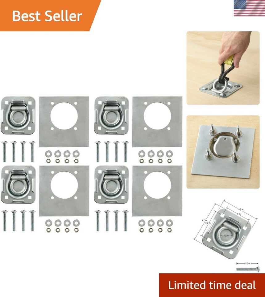4-Pack - Recessed Pan D-Ring Trailer Tie Downs 6,000 Lb. Capacity and Heavy B...